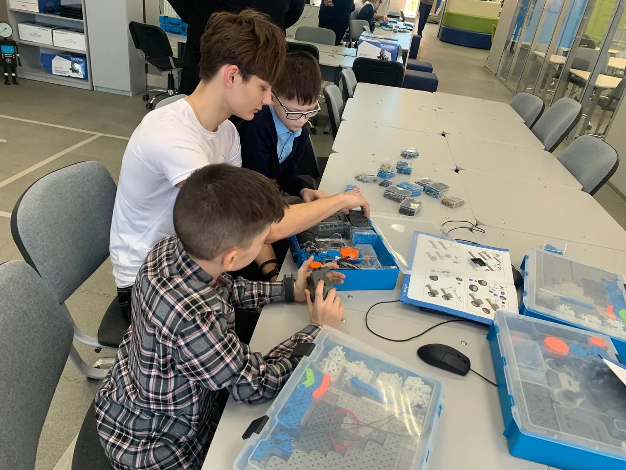 1. Конструирование: Ребята под руководством наставников собирали своих роботов. Это позволило им проявить инженерную мысль, научиться работать в команде и освоить базовые навыки конструирования.